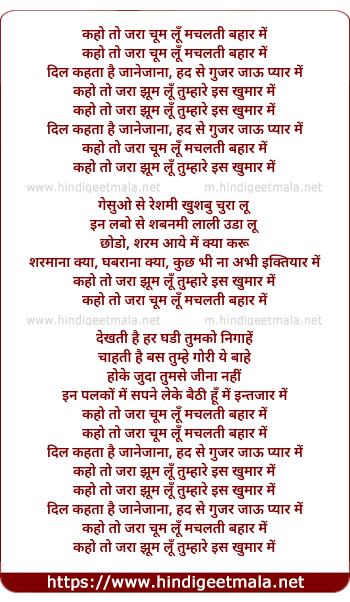 Lyrics of Kaho To Jara Chum Lu Machalti - कहो तो जरा चूम लूँ मचलती