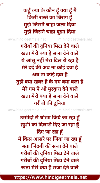 Lyrics of Kahoon Kya Ki Kaun Hun Kya Hun Main Raste Ka Chirag - कहूँ क्या के कौन हूँ क्या हूँ मै रास्ते का चिराग हूँ