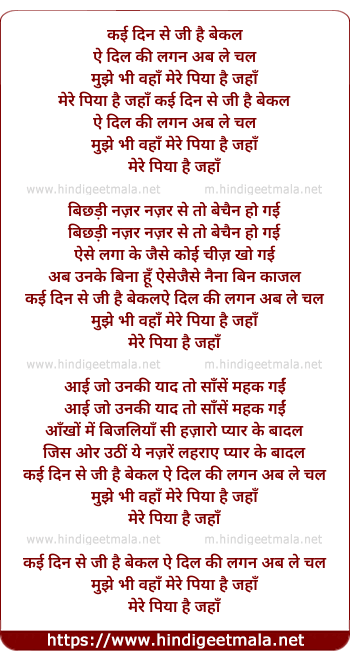 mujhe bhi vahaan mere piyaa hai jahaan