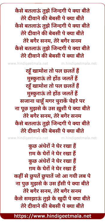 Poetic Translation - Lyrics of Kaise Batlaau Tujhe Jindagi Pe Kya Beete - कैसे बतलाऊं तुझे जिन्दगी पे क्या बीते