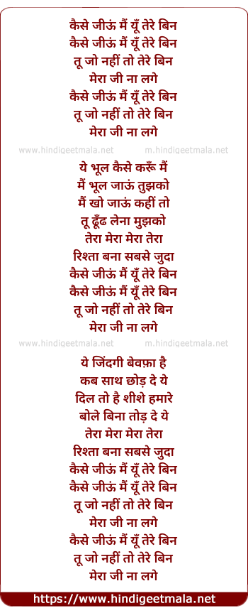 Lyrics of Kaise Jiyu Main Tere Bin - कैसे जीऊं मैं यूँ तेरे बिन