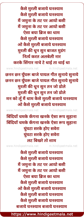 Lyrics of Kaise Murli Bajayee Ghanshyam - कैसे मुरली बजाये घनश्याम