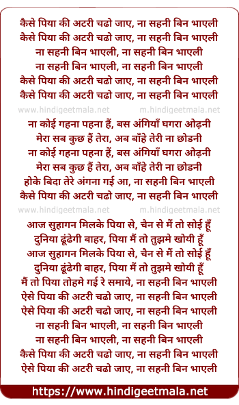 aise piya ki atari chadho jaaye, na sahni bin bhayeli