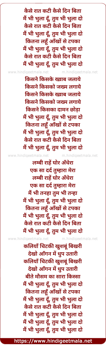 Lyrics of Kaise Raat Kati Kaise Din Bita - कैसे रात कटी कैसे दिन बिता