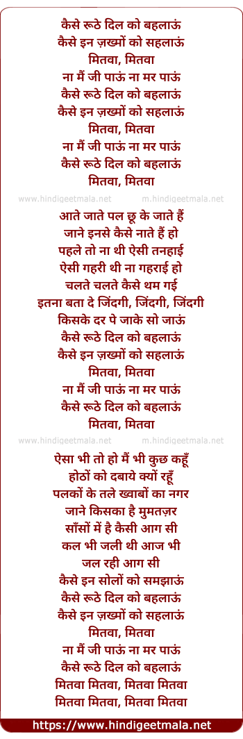 Lyrics of Kaise Ruthe Dil Ko - कैसे रूठे दिल को बहलाऊं