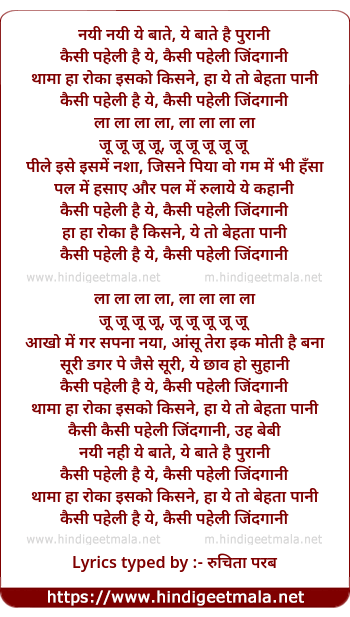 Lyrics of Kaisi Paheli Hai Ye, Kaisi Paheli Jindgani - कैसी पहेली है ये, कैसी पहेली जिंदगानी