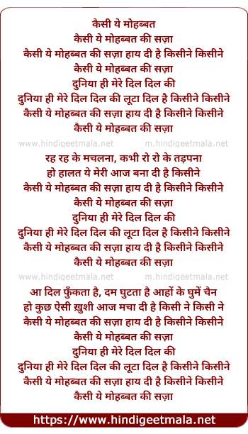 Lyrics of Kaisee Yeh Mohabbat Kee Saja - कैसी ये मोहब्बत की सज़ा