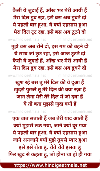 Lyrics of Kaisi Yeh Judai Hai (Remix) - कैसी ये जुदाई हैं, आँख भर मेरी आयी हैं