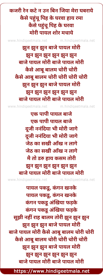 Poetic Translation - Lyrics of Kajri Rain Kate Na Un Bin