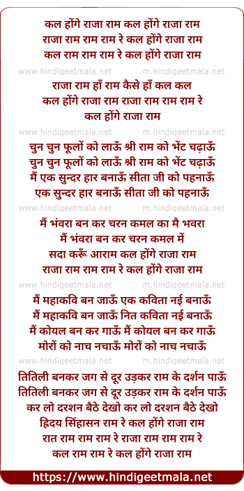 Lyrics of Kal Honge Raja Ram - कल होंगे राजा राम कल होंगे राजा राम