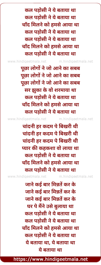 Lyrics of Kal Padosi Ne Bataya Tha - कल पड़ोसी ने ये बताया था