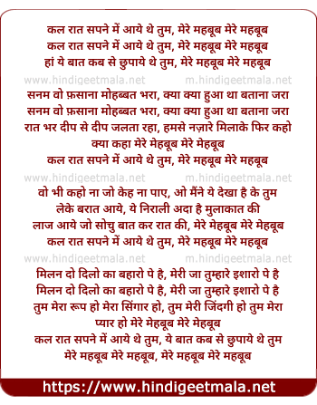 kal rat sapne me aaye the tum, mere mehbub mere mehbub