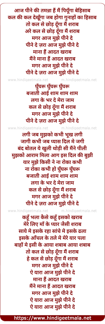 pine de zara aaj mujhe pine de