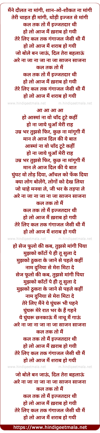 Lyrics of Kal Tak Izzatdar Thi - कल तक इज्जतदार थी