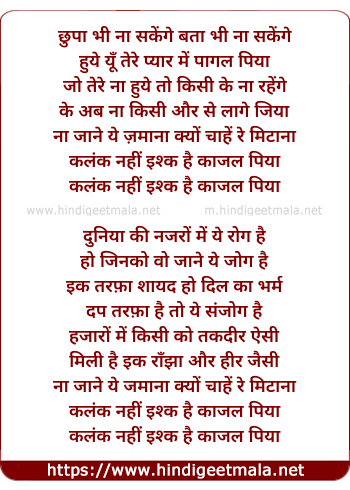 Lyrics of Kalank Nahi Ishq Hai Kaajal Piya (Duet) - कलंक नहीं इश्क है काजल पिया (Duet)