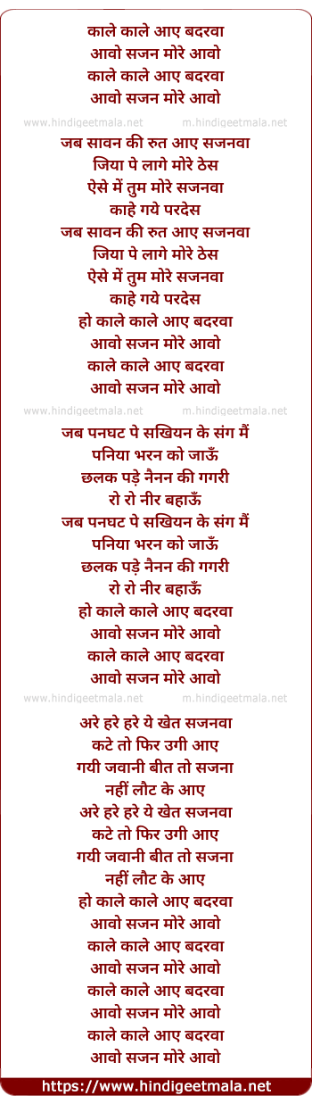 Lyrics of Kale Kale Aaye Badarva - काले काले आए बदरवा