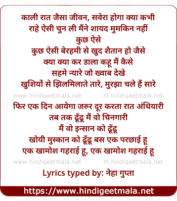 Lyrics of Kalee Rat Jaisa Jivan - काली रात जैसा जीवन