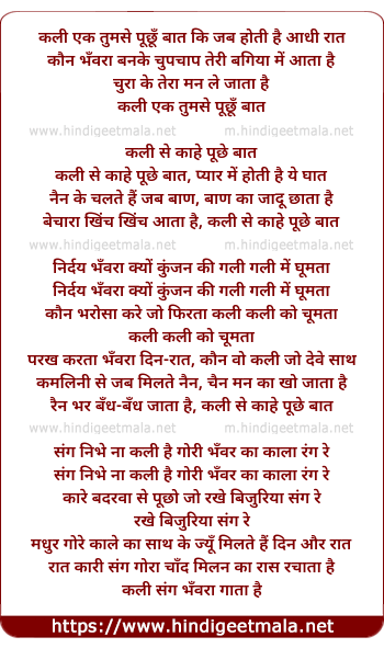 Lyrics of Kali Ek Tumase Puchhu Baat - कली एक तुमसे पूछूँ बात