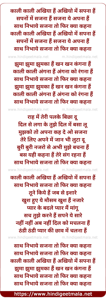 Lyrics of Kali Kali Akhiya Haina - काली काली अखिया हैं अखियो में सपना हैं