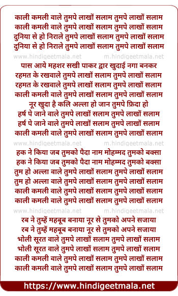 kali kamli wale tumpe lakho salam tumpe lakho salam