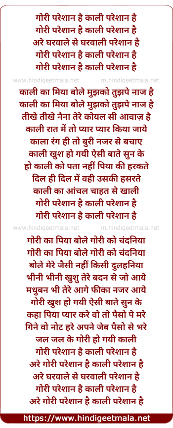 Lyrics of Kali Pareshan Hai, Gori Pareshan - काली परेशान है, गोरी परेशान