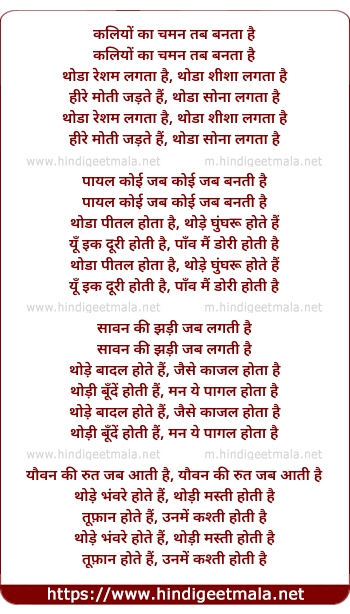 Lyrics of Kaliyo Kaa Chaman Tab Banata Hai - कलियों का चमन तब बनता है
