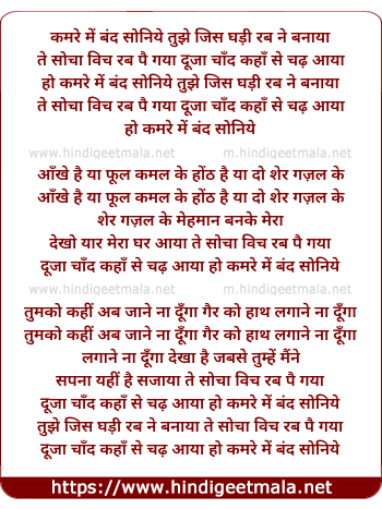 Lyrics of Kamre Me Band Soniye - कमरे में बंद सोनिये