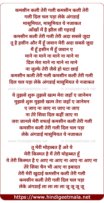 Lyrics of Kamsin Kali Teri Gali - कमसीन कली तेरी गली