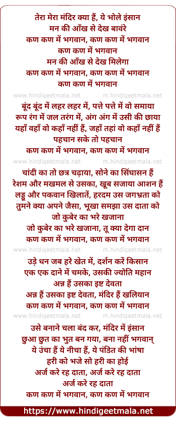Poetic Translation - Lyrics of Kan Kan Me Bhagwan - कण कण में भगवान