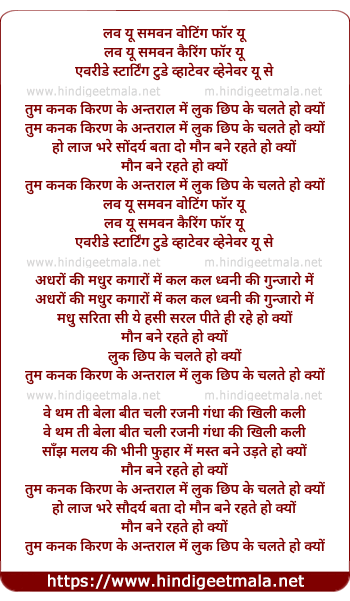 Lyrics of Kanak Kiran Ke Antral Me - कनक किरण के अन्तराल में