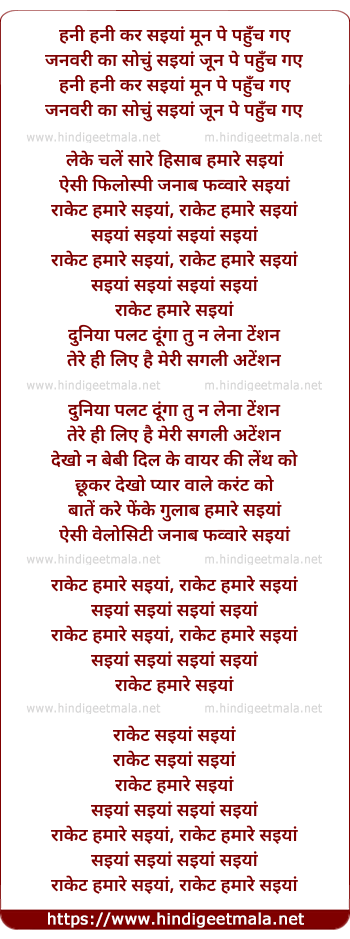 Lyrics of Rocket Saiyyan - राकेट सइयां