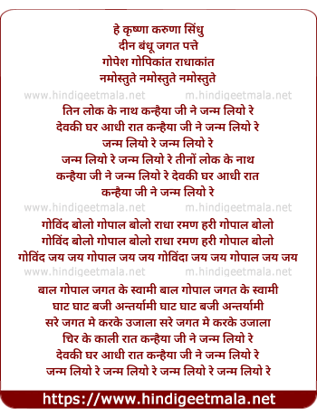 Lyrics of Kanhaiya Ji Ne Janam Liyo - कन्हैया जी ने जन्म लियो