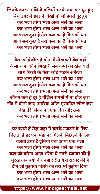Lyrics of Kar Bhala Hoga Bhala Anth Bhale Ka Bhala - कर भला होगा भला अन्त भले का भला