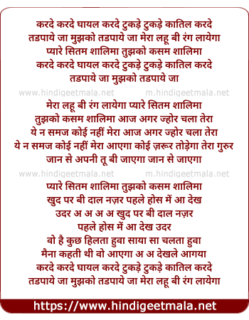 Poetic Translation - Lyrics of Kar De Kar De