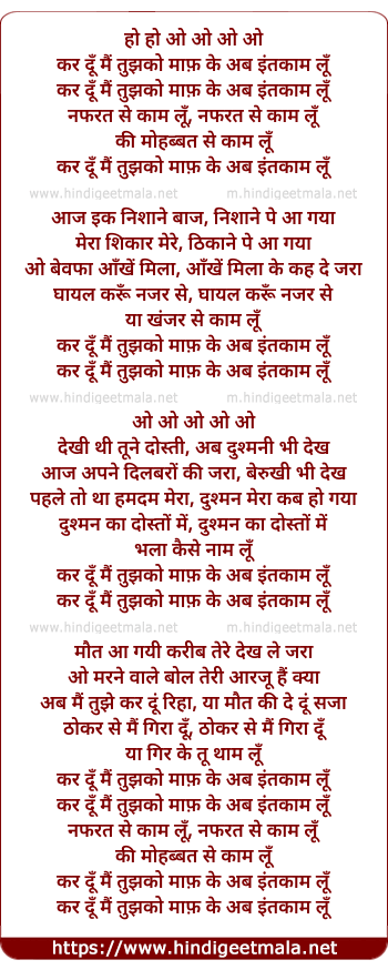 Lyrics of Kar Du Mai Tujhko Maaf - कर दूँ मैं तुझको माफ़