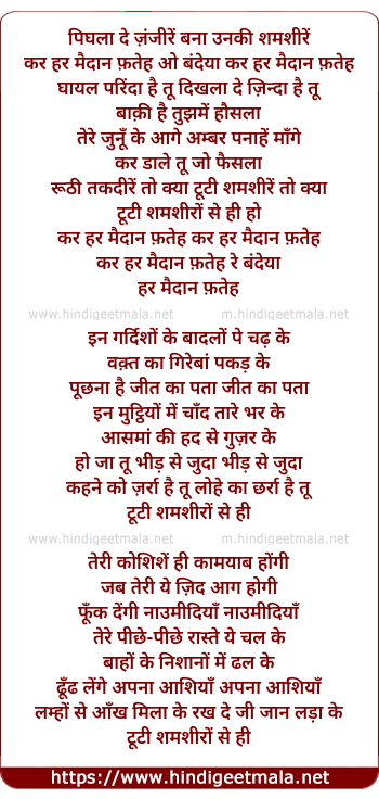 pighla de zanjirein bana unki shamshirein