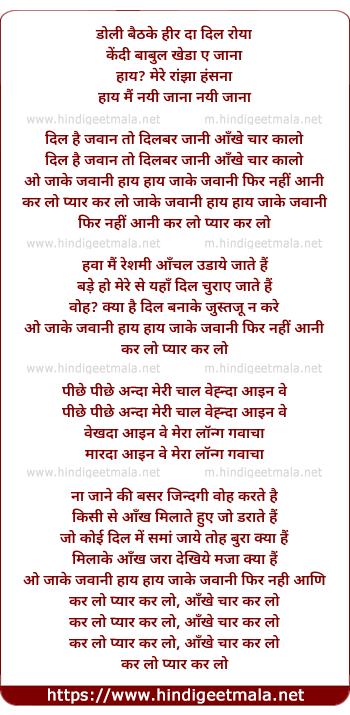 Lyrics of Kar Lo Pyaar Kar Lo - कर लो प्यार कर लो