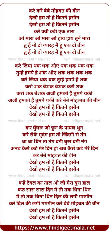 Lyrics of Kare Bebe Mohabbat Ki Been - करे बेबे मोहबत की बीन