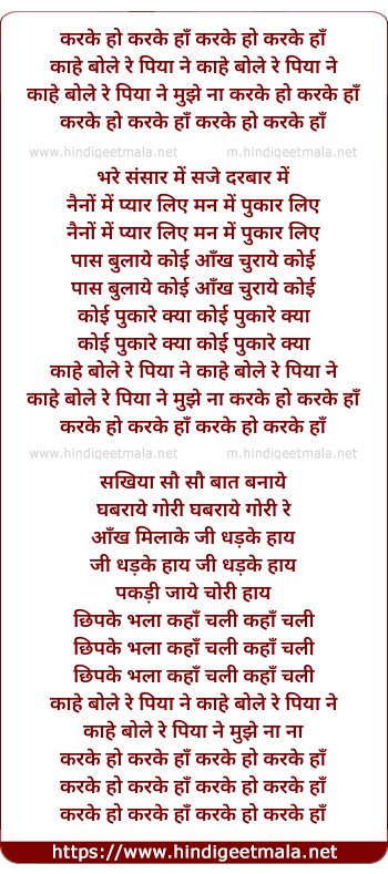 Lyrics of Karke Ho Karke Ha - करके हो करके हाँ