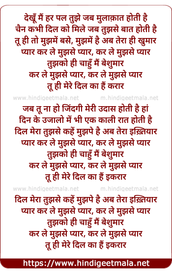 Lyrics of Karle Mujhse Pyaar (Remix) - देखूँ मैं हर पल तुझे जब मुलाक़ात होती है