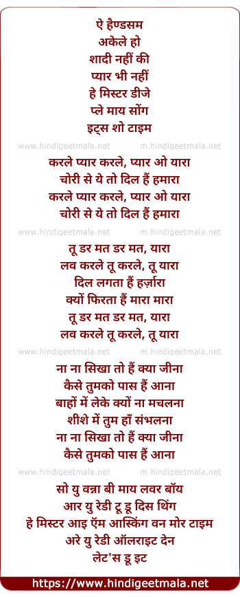 Lyrics of Karle Pyaar - ऐ हैण्डसम