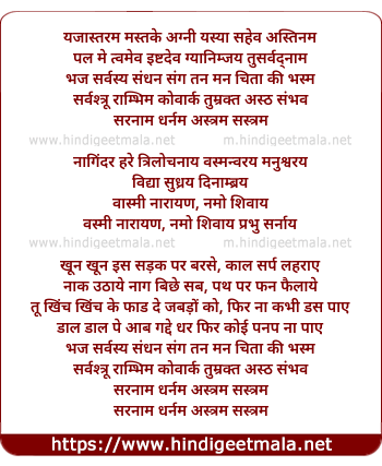Lyrics of Yajasastaram Mastake Agni Yasya Sahev Astinam - यजस्तरम मस्तके अग्नी यस्या सहेव अस्तिनम