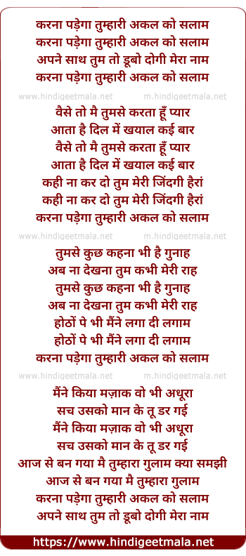 Lyrics of Karna Padega Tumhari Akal Ko Salaam - करना पड़ेगा तुम्हारी अकल को सलाम
