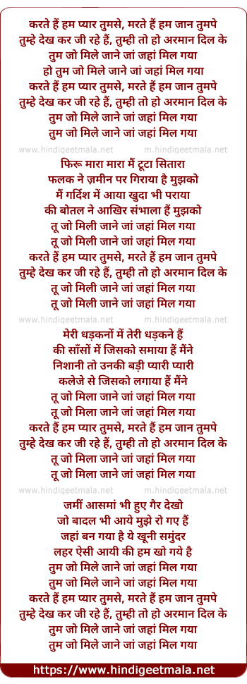 Lyrics of Karte Hai Hum Pyar Tumse - करते हैं हम प्यार तुमसे