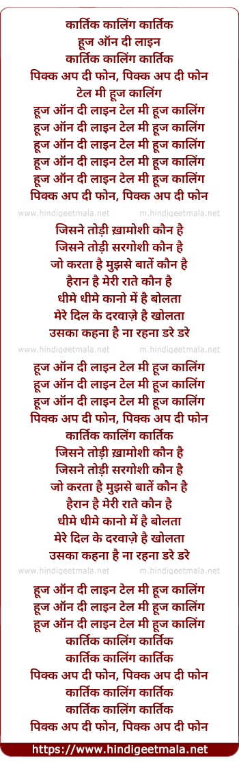 Lyrics of Karthik Calling Karthik (Theme Remix) - कार्तिक कालिंग कार्तिक