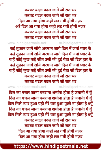 Lyrics of Karwat Badal Badal Jage - करवट बदल बदल जागे