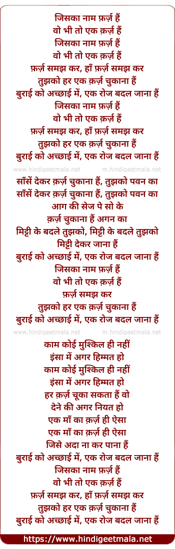 Lyrics of Karz Chukana Hai - कर्ज चुकाना है