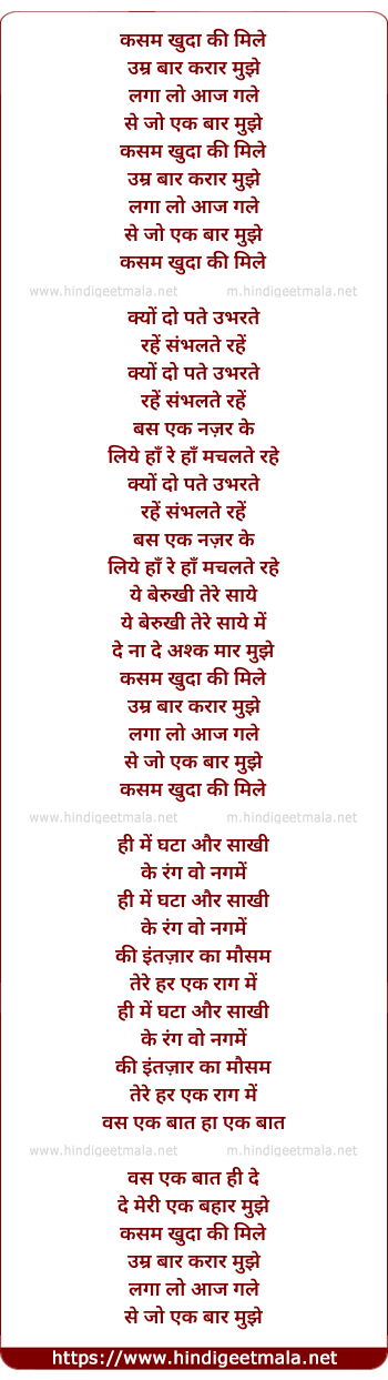 Lyrics of Kasam Khuda Ki Mile (Male) - कसम खुदा की मिले