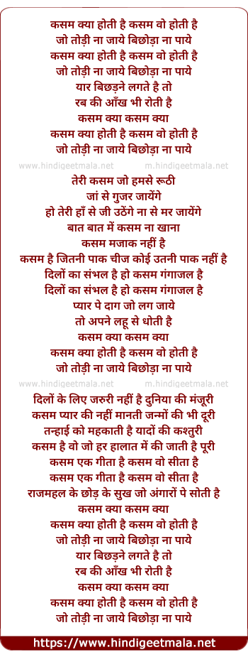 Lyrics of Kasam Kya Hoti Hai (Male) - कसम क्या होती है