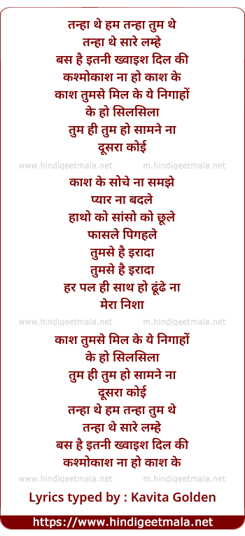 Lyrics of Kash (Remix) - तन्हा थे हम तन्हा तुम थे
